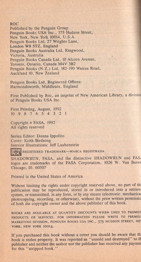 Birkitts Books presents ... Never Trust an Elf (Shadowrun #6) ISBN: 0451451783 Author: Charrette, Robert N. Publisher: Ace Release Date: 1992-08-04 Seller Category: Science Fiction and Fantasy Qty Available: 1 Condition: Used: Very Good Sku: 250925006 Notes: 1st edition, 1st printing. Light wear, rear cover has some light creasing, binding sound, pages age-toned. Don't forget to check out other great deals in our Store!!