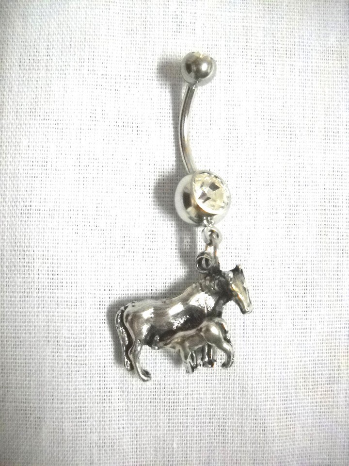 - NEW 3D MARE HORSE w NURSING COLT PONY EQUESTRIAN ANIMALS 14g CLEAR CZ BELLY RING