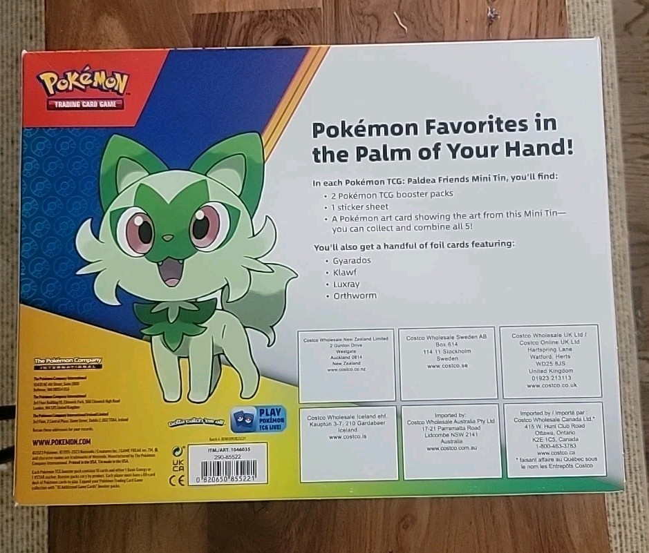 This product is a set of three new and sealed boxes of Pokemon cards, including a total of 5 mini tins and 4 promo cards. The cards are from the Pokemon Trading Card Game and are suitable for ages 6 and up. Each box contains promo cards from the year 2023, making it a desirable collectible for fans of the game. The mini tins provide a fun way to add more cards to your collection, and the promo cards offer special edition cards that are sure to be a hit among collectors.