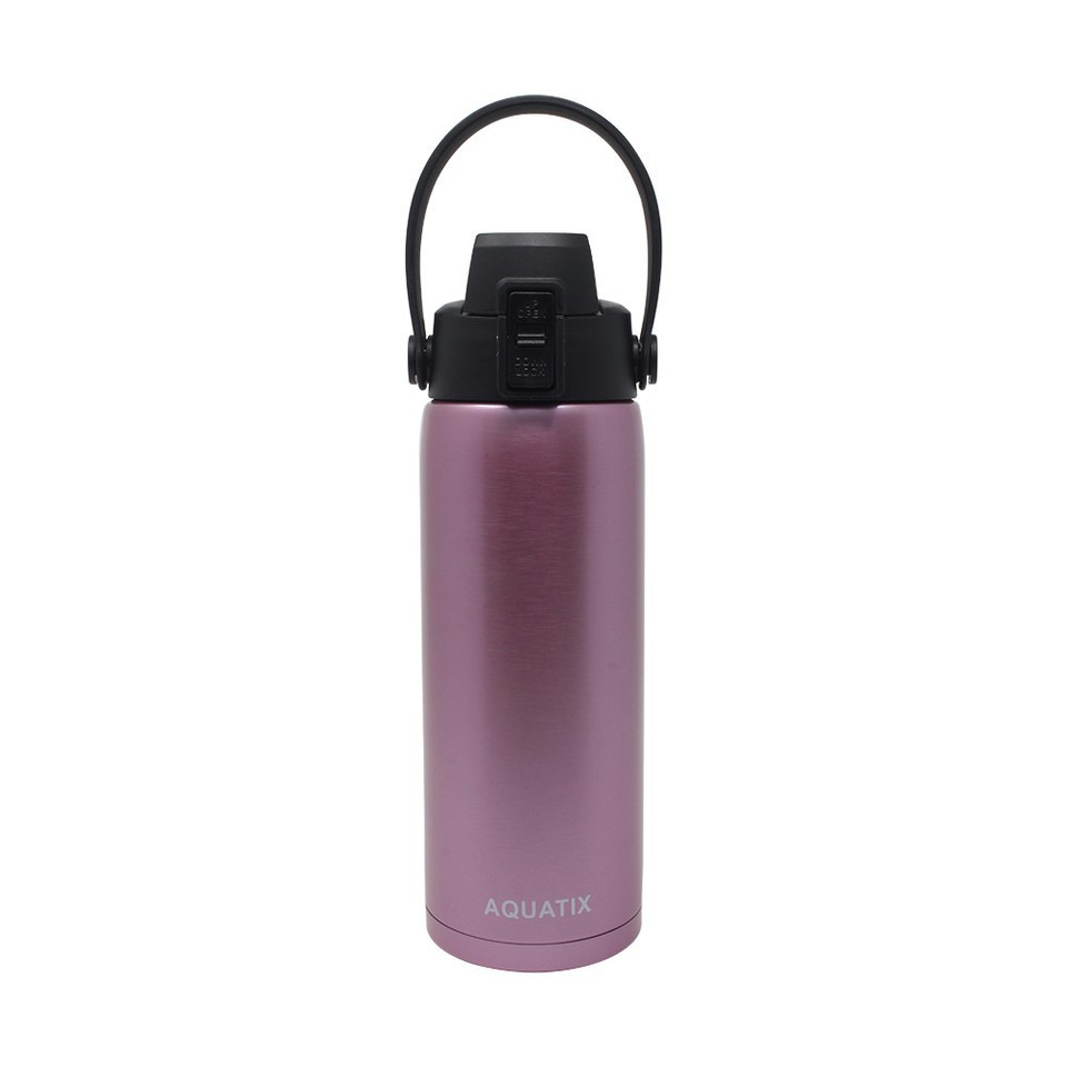 The Aquatix Sporty 21 oz Double Wall Insulated Stainless Steel Water Bottle is perfect for use at the gym, at the office, around your house and anywhere you need to take your beverage of choice with you. Made from durable and sturdy PREMIUM QUALITY, Top Chef 18/8 FOOD GRADE STAINLESS STEEL, this Aquatix Sporty 21 ounce water bottle is a great eco friendly sports bottle. The double wall insulated water bottle is PERFECT for carrying while walking, hiking, camping, use at the gym or just on the go- as it fits MOST car cup holders. No more spills and messes while driving! Ditch those plastic water bottles! GO HEALTHY with this BPA Free, FOOD GRADE stainless steel water bottle that holds a large capacity of liquids 21 fluid ounces and no longer worry about toxins and chemicals leaching into your beverage. Drink crisp, clean, healthy and refreshing drinks from Your Aquatix Water Bottle every time. Just Fill and Go! This sporty bottle features a flip top spout drinking mechanism allows the ease of staying hydrated even while on the go! The flip cap top provides single-handed drinking ability and is perfect for your busy life on the go! Stay hydrated and DRINK MORE WATER with this large capacity 21 ounce water bottle. Double vacuum insulated wall construction contributes to hot teas, soup, coffee or other blends being consistently hot for up to 6 hours. And, for cold water, smoothies, soft drinks, or anything you may need very cold, 24 hours of insulated confidence, guaranteed cold, period! The bottle will not "sweat", meaning it will not create condensation which may leave a "ring" of liquid on your expensive buried walnut side table. Easy to hand wash or clean, NO aftertaste after cleaning. COLD LIQUIDS or HOT LIQUIDS! This is a double wall insulated water bottle that is made of 18/8 food grade stainless steel water bottle! No other bottle has all the features of our Aquatix Sport Bottle!