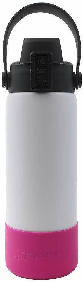 New Aquatix White 21 oz Insulated FlipTop Sport Bottle w/ Silicon Boot (Pink)