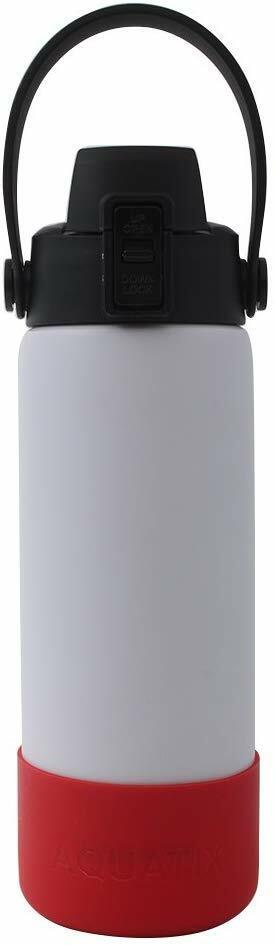 New Aquatix White 21 oz Insulated FlipTop Sport Bottle w/ Silicon Boot (Red)