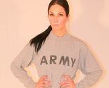 The Authentic OLD SCHOOL Army PT Long Sleeve Shirt for COLD Weather. This physical training (PT Gear) LONG sleeve t-shirt is athletic grey with "ARMY" on front and "A" on back in reflective screen printing ink.