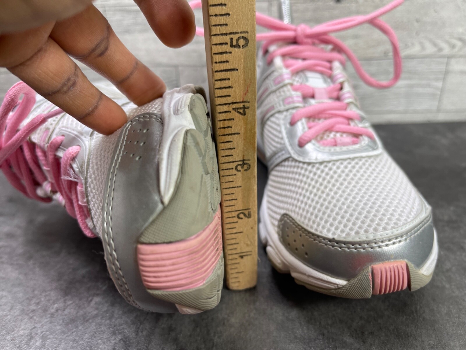 Note : Being a used item, there are signs of prior use on it like a few body abrasions, a little fading, staining, heel wear, some insole/inside body staining/wear and an area of gum on the bottom sole but overall, they are still in really great condition.
