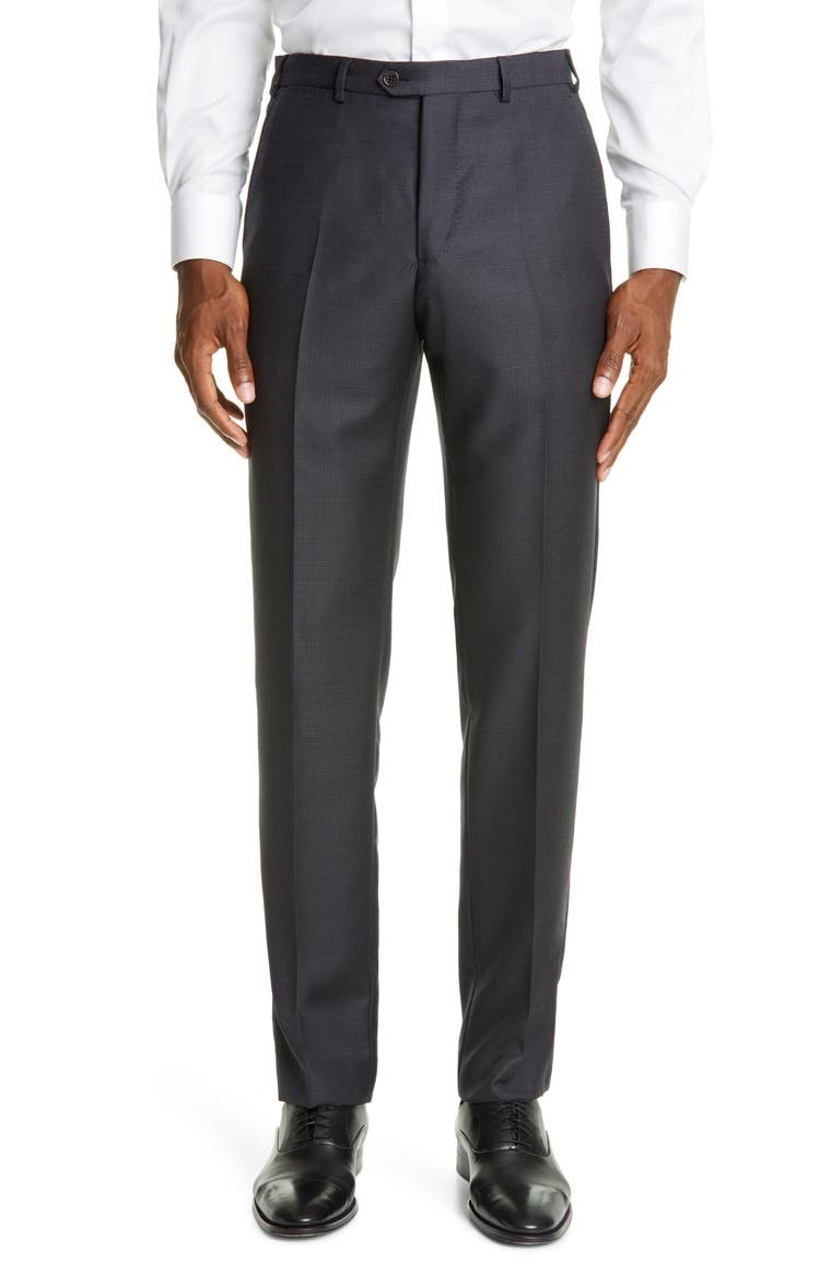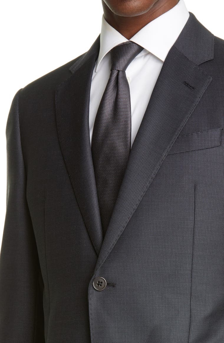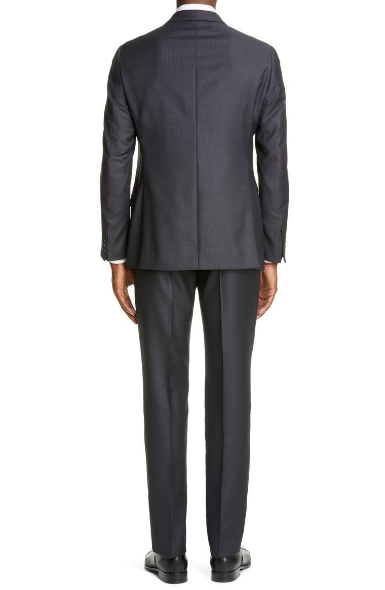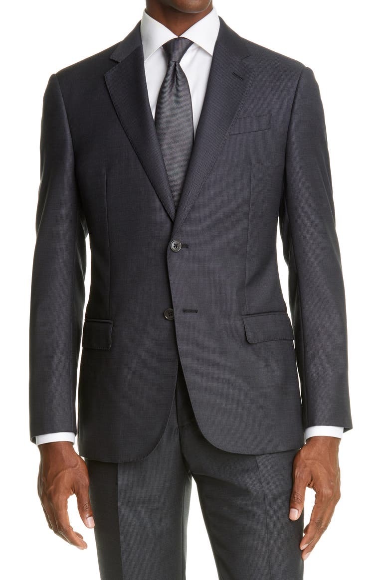 Size info True to size. Considered a Classic fit; cut with a little extra room through the chest and body for comfort. Height recommendations, Regular=5'8"-6'2" A tonal micro pattern textures this well-crafted Italian suit cut from pure wool and framed with handsome notched lapels. Jacket has notched lapels; nonfunctional four-button cuffs ( not attached ) chest pocket; flap pockets; interior pockets; side vents Trousers have zip fly with button-tab closure; slant pockets; back button-welt pockets Unhemmed. Jacket is lined; trousers are lined to the knee 100% wool Dry clean Made in Italy Men's Clothing Item #6226111