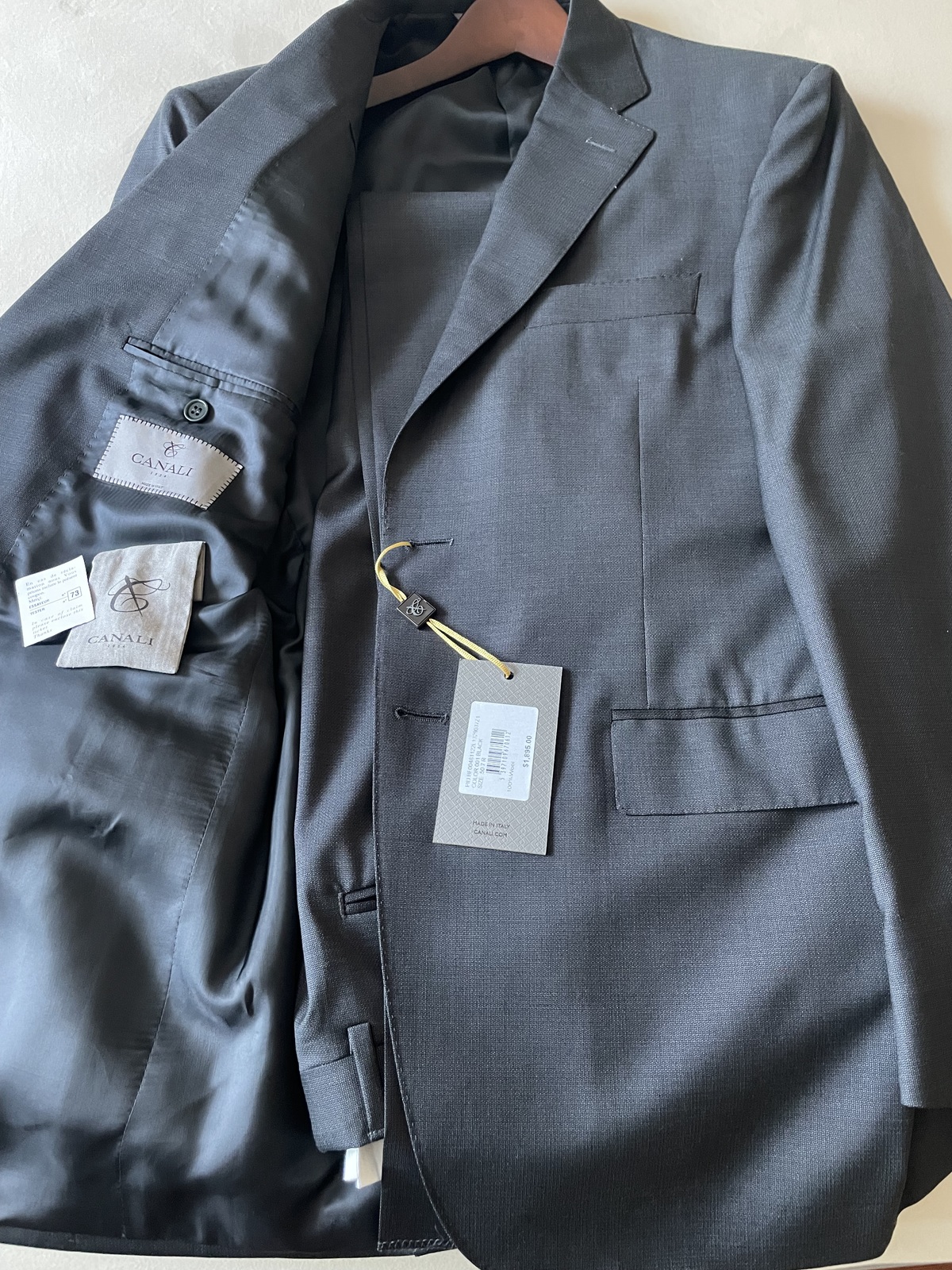 Primary image for New Canali Siena Micro Texture Wool Suit, Size 40R Us in Black