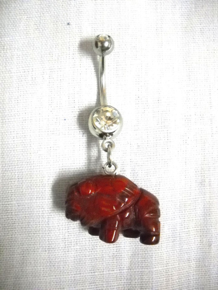 - NEW CARVED RAINBOW JASPER GEMSTONE BUFFALO TATANKA BEAD ON CLEAR CZ BELLY RING