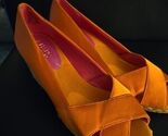 - New Chaps Womens 8 B Dakota Orange Shiny Satin Open Toe Wedge Heel Pink Inside