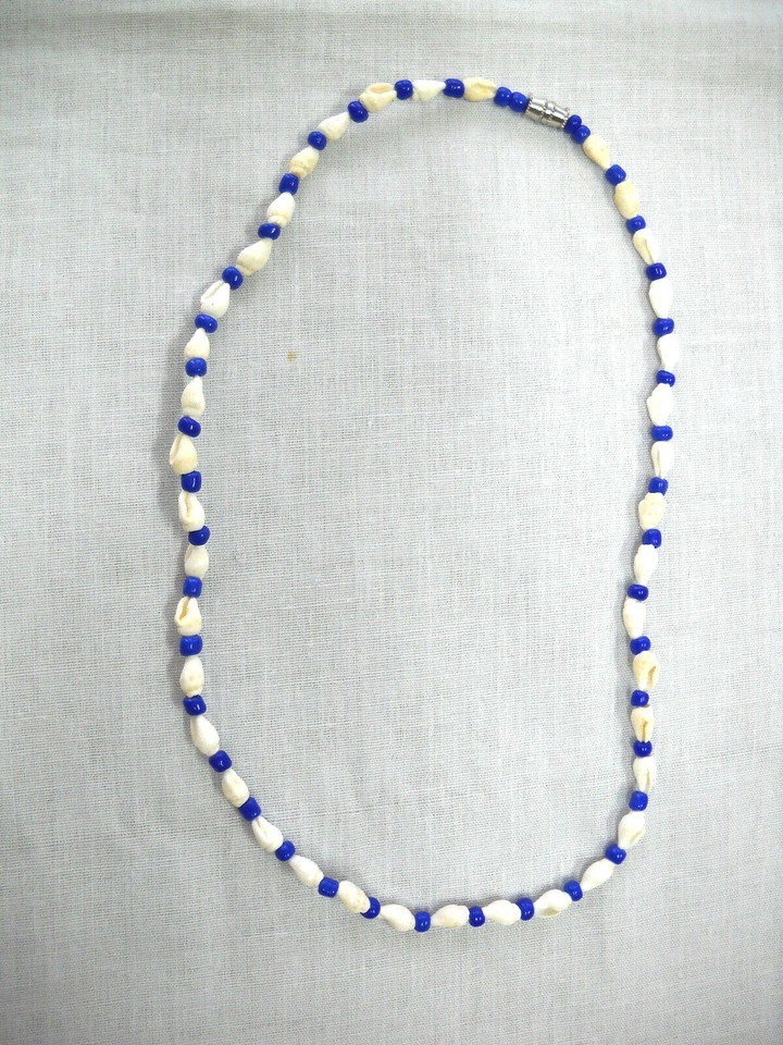 - NEW COBALT BLUE GLASS SEED BEAD & FULL TINY WHOLE SHELL SURF FUN BEACH NECKLACE