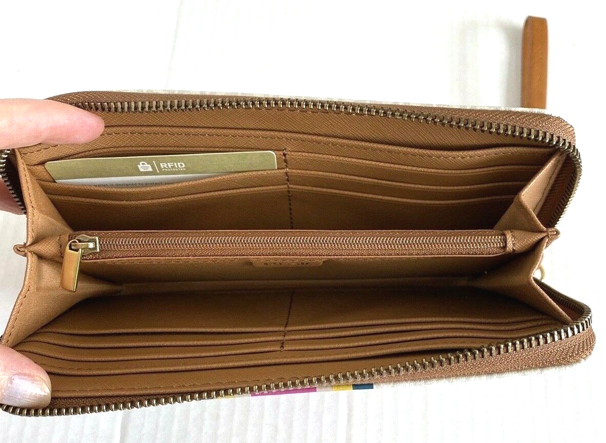 New Fossil Jori zip clutch wristlet RFID wallet Pink Stripe with Dust bag