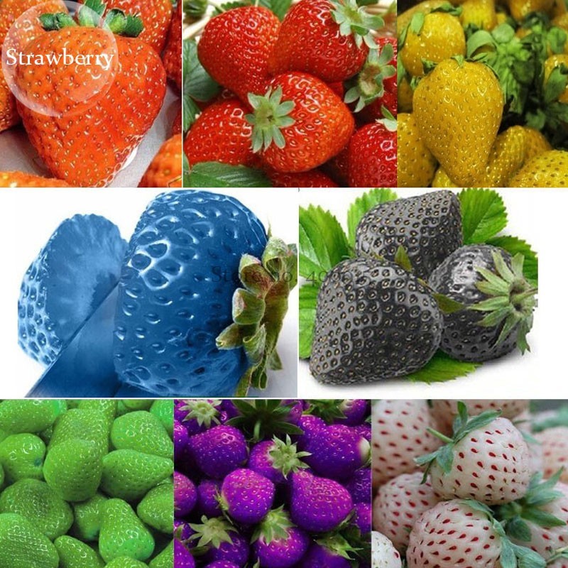 - New Fresh Mixed 9 Types Of Strawberry Fruit 100 Seeds Red Yellow Light Blue Blac
