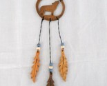 - NEW HAND MADE WOOD FULL BODY HOWLING WOLF DREAM CATCHER w 3 DANGLING FEATHERS