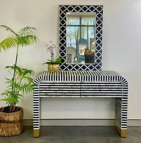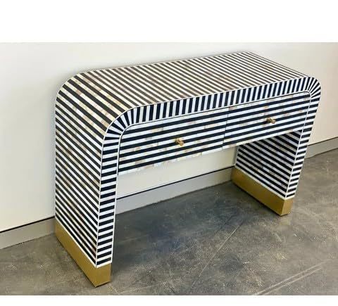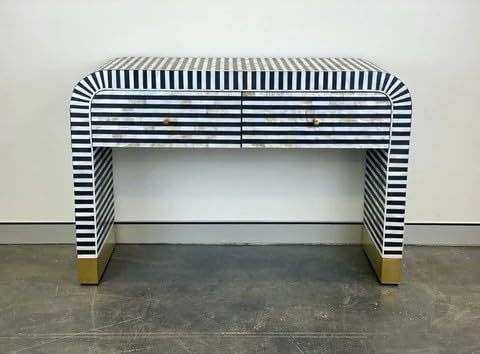 New Handmade Bone Inlay 2 Drawer Console Table, Waterfall Bone Inlay, Bone Inlay