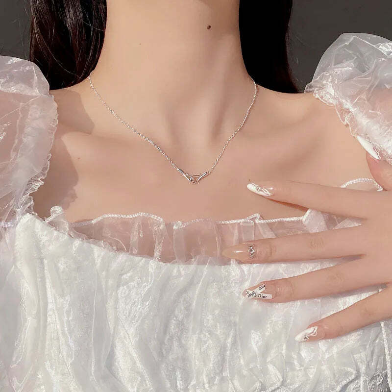 - New INS Blogger Same Style S925 Sterling Silver Interlocking Pendant Necklace fo