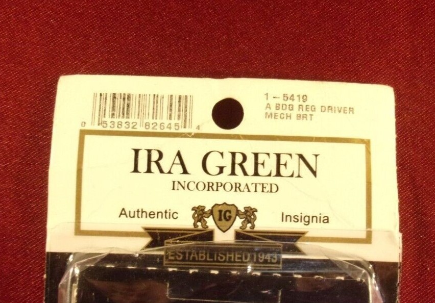 NEW IRA GREEN INCORATED U.S. ARMY REIGADE REGULATION DRIVER AND MECHANIC BADGE CONDITION: NEW IN PACKAGE NEVER BUY YOUR INSIGNIAS THAT OUTSIDE A SEALED PACKAGE, THIS INSIGNIA IS GAURANTEED TO NOT HAVE SCRATCHES OR FINGERPRINTS. IT IS SEALED INSIDE ORIGINAL PACKAGE DEFECTS: NONE PLEASE REFER TO PHOTOS JULY 13, 2022 MAKE AN OFFER: WE NORMALLY REPLY WITHIN 24 HOURS THANK YOU FOR LOOKING AT OUR STORE WE ARE A PROUD VETERAN EMPLOYER, WE EMPLOY ALL BRANCHES, U.S. ARMY, U.S. AIR FORCE, USMC, U.S. NAVY AND CIVIL AIR PATROL. WE PROUDLY HIRE ALL VETERANS. WE SELL U.S. MADE MERCHANDISE MADE BY AMERICANS. SAVE ON SHIPPING BY BUYING MORE, WE DISCOUNT SHIPPING IF YOU HAVE MORE THEN ONE ITEM, IT WILL SAVE YOU MONEY AND IT WILL SAVE US MONEY. WE ARE FAST FAST FAST SHIPPERS: WE SHIP SAME DAY NORMALLY, IF YOU PURCHASE AFTER 5 PM WE WILL SHIP THE NEXT MORNING TO INCLUDE SATURDAY AND SUNDAYS, WE HAVE A COURIER PICKUP DAILY. WE HAVE A NO HASSLE RETURN POLICY, IF YOU HAVE A ISSUE WITH ANY ITEMS IN MY STORE, SIMPLY CONTACT US AND I WILL FIX IT. WE SEND TO INTERNATIONAL BUYERS IF THE ITEM MEETS THE REQUIREMENTS. ALL ITEMS IN MY STORE CAN BE SHIPPED INTERNATIONALLY VIA THE GLOBAL SHIPPING PROGRAM. ALL TAXES AND ADDITIONAL COUNTRY REGULATED FEES ARE THE RESPONSIBILITY OF THE INTERNATIONAL BUYER. EXCEPT FOR RESTRICTED COUNTRIES, WE WILL SEND IT TO THE SHIPPING CENTER IN KENTUCKY, AND WILL SEND IT TO YOUR ADDRESS IN YOUR COUNTRY. INTERNATIONAL BUYERS CANNOT BUY ANY MILITARY ITEMS IN MY STORE, OR ANY RESTRICTED ITEMS THAT DEEMS RESTRICTED. THE GLOBAL SHIPPING PROGRAM ALLOWS INTERNATIONAL BUYERS TO PURCHASE FROM UNITED STATES SELLERS LIKE MYSELF; TO ENROLL, SIMPLY CALL.