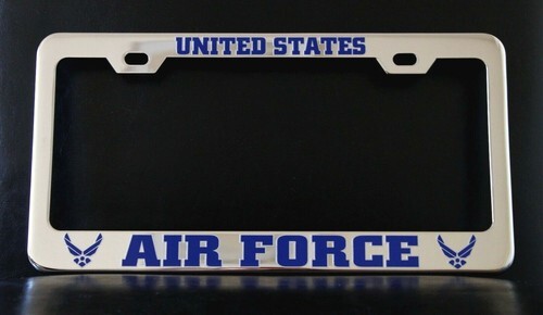 NEW LICENSE PLATE FRAME USAF U.S AIR FORCE PROUD TO SERVE BLACK SILVER MADE USA