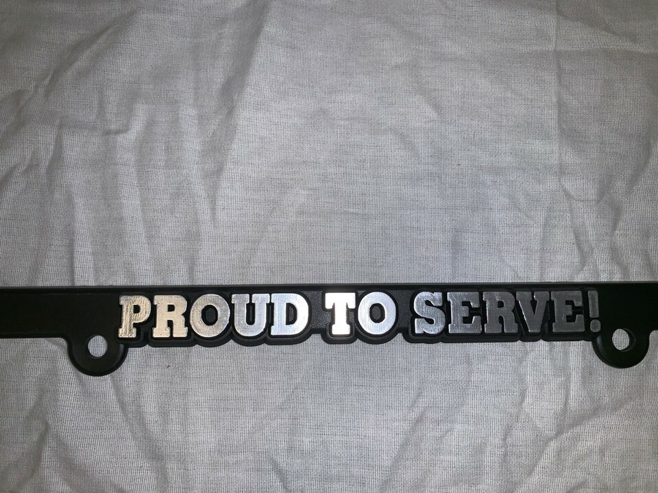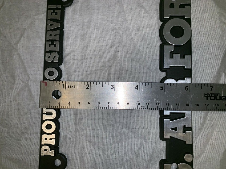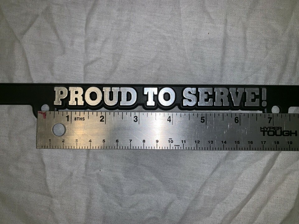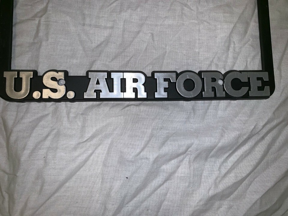 THIS IS THE PLATE COVERS THAT HAVE THE ETCHED RAISED LETTERS NOT THE PAINTED ON OR STICK ON SO THESE WONT SCRATCH OFF PEEL OR DISAPPEAR our store is Veteran Owned and Veteran Operated. NEW LICENSE PLATE FRAME USAF U.S AIR FORCE PROUD TO SERVE BLACK SILVER MADE USA SIZE: STANDARD PLATE 12 INCHES X 6 INCHES RAISED LETTERS COLOR: BLACK SILVER CONDITON: NEW rain and element resistant DEFECTS: NONE MADE IN THE USA IF YOU FIND ANYTHING WRONG WITH THIS LISTING , PLEASE MESSAGE ME RIGHT AWAY AND I WILL FIX IT, OUR GOAL IS TO 100 PERCENT SATISFY YOU. WE SEND TO INTERNATIONAL BUYERS IF THE ITEM QUALIFIES. ALL MY STORE ITEMS CAN BE SENT INTERNATIONALLY THRU THE GLOBAL SHIPPING PROGRAM . BUYERS ARE RESPONSIBLE FOR ALL TAXES, AND ADDITIONAL COUNTRY REGULATED FEES. WE WILL SEND TO THE SHIPPING CENTER IN KENTUCKY AND WILL SEND IT TO YOUR ADDRESS IN YOUR COUNTRY EXCEPT RESTRICTED COUNTRIES, INTERNATIONAL BUYERS CANNOT BUY ANY MILITARY ITEMS IN MY STORE OR ANY RESTRICTED ITEMS THAT DEEMS RESTRICTED. THE GLOBAL SHIPPING PROGRAM IS A PROGRAM FOR INTERNATIONAL BUYERS TO PURCHASE FROM UNITED STATES SELLERS LIKE MYSELF, YOU SIMPLY CALL AND ENROLL. Thank You for looking at my Store. I am a United States Army Veteran and our Store is Veteran Owned and we count on an honest transaction. We have a no hassle return Policy. It?s really simple if you don?t like it please return the item and I will issue you a refund. I have quickly learned that Customer Satisfaction is the number one Priority. My Store is open for Business and I invite everyone to take a quick look at what I have...Just click here and see all that I have We now ship every day to include SATURDAY AND SUNDAY? which means our carrier service now picks up 7 Days a week. If you BUY TODAY? your ITEM will get out no later than 72 hours after your purchase. It will have the best head start as it will be processed at the Denver Hub within 72 Hours of your purchase. Even if you buy at night your Item will be processed the next two mornings and will be at the Denver Hub WITHIN 72 HOURS. We have Incredible FAST SHIPPING and again WE NOW SHIP ON SATURDAY AND SUNDAY. If you have any questions please MESSAGE ME... If you have any CONCERNS please MESSAGE ME. If you have any ISSUES with your Item please let me fix it. I count on your Business and in return I will give you an Honest Auction. I look forward to doing Business with you.