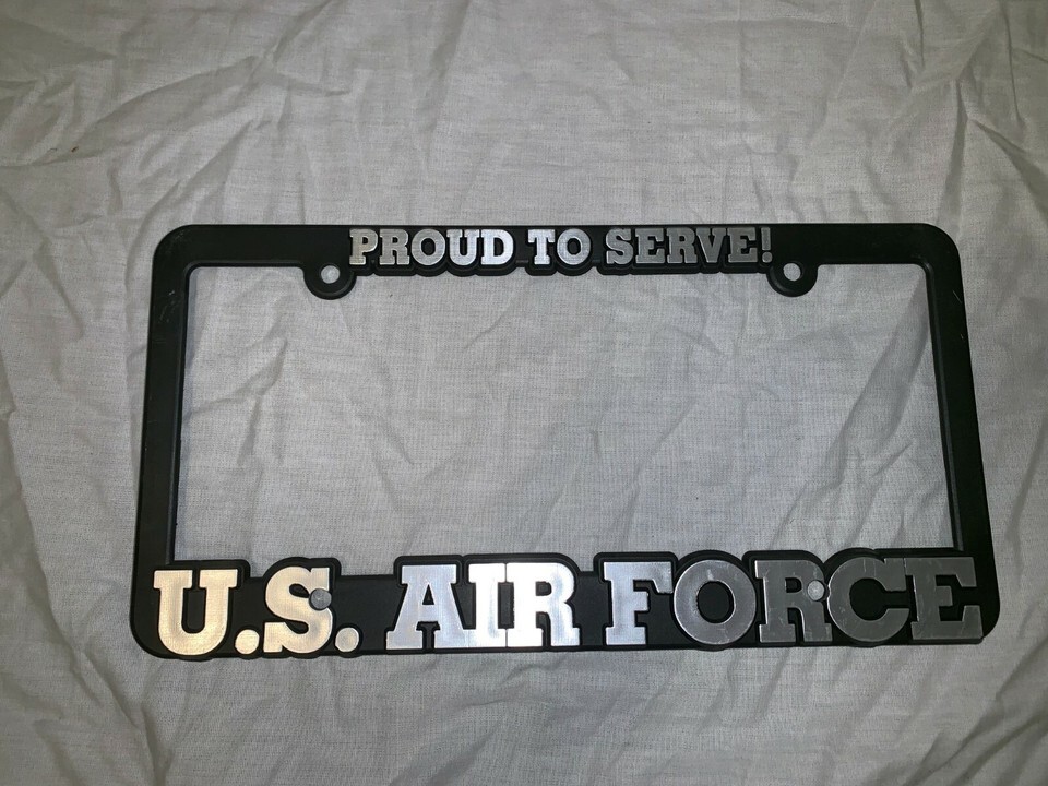 Primary image for NEW LICENSE PLATE FRAME USAF U.S AIR FORCE PROUD TO SERVE BLACK SILVER MADE USA