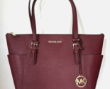 New Michael Kors Charlotte Large Shoulder Tote Saffiano Leather Dark Cherry