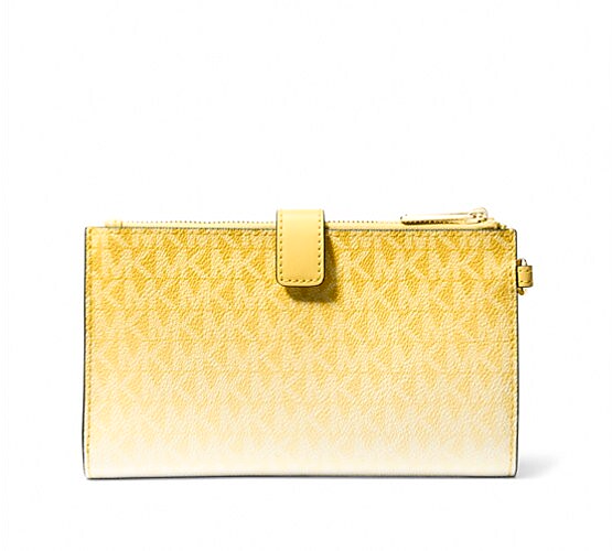 - New Michael Kors Jet Set Travel Double Zip Wristlet Wallet Daisy Yellow