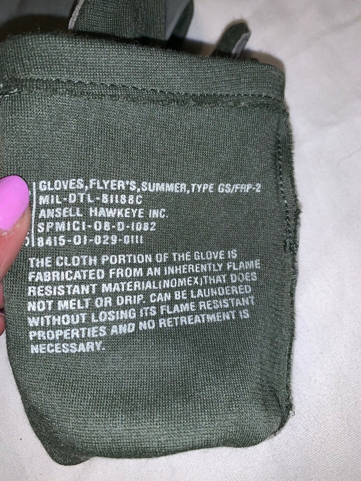 MILITARY FOLIAGE GREEN SUMMER FLYER TYPE 2 GS/FRP GLOVES AUTHENTIC MILITARY ISSUE COLOR: SAGE GREEN CONDITION: NEW Nomex Gloves, Summer Flyers Type GS/FRP-2. Manufactured to U.S. Military Specification: MIL-G-81188C. Fire Resistant, Non Melt, Non-Drip Material.Anti-Static with Permanent Fire Resistant Properties. Extended Length Glove. NSN numbers include 8415010290109, 8415010290116, 8415014828417, 8415010401453 and 8415010402012. Manufactured according to U.S. Military specification, the Nomex Flight of 100% Nomex brand fiber offers excellent tactile sensitivity, and will not support a flame or melt (even after laundering) for excellent protection from flash and flame hazard. Color: Sage Green Leather Fire Retardant/Sweat Resistant TAA Compliant HOW TO DETERMINE YOUR GLOVE SIZE Start measuring palm from between the index finger and thumb (do not include the thumb), making a complete circle with the measuring tape. Use that measurement to determine your glove size. XS (6.75-7.25) = Size 7 S (7.25-8) = Size 8 M (8.0-8.5) = Size 9 L (8.5-9) = Size 10 XL (9-9.5) = Size 11 XXL (9.5-10) = Size 12 IF YOU FIND ANYTHING WRONG WITH THIS LISTING , PLEASE MESSAGE ME RIGHT AWAY AND I WILL FIX IT, OUR GOAL IS TO 100 PERCENT SATISFY YOU. WE SEND TO INTERNATIONAL BUYERS IF THE ITEM QUALIFIES. ALL MY STORE ITEMS CAN BE SENT INTERNATIONALLY THRU THE GLOBAL SHIPPING PROGRAM . BUYERS ARE RESPONSIBLE FOR ALL TAXES, AND ADDITIONAL COUNTRY REGULATED FEES. WE WILL SEND TO THE SHIPPING CENTER IN KENTUCKY AND WILL SEND IT TO YOUR ADDRESS IN YOUR COUNTRY EXCEPT RESTRICTED COUNTRIES, INTERNATIONAL BUYERS CANNOT BUY ANY MILITARY ITEMS IN MY STORE OR ANY RESTRICTED ITEMS THAT DEEMS RESTRICTED. THE GLOBAL SHIPPING PROGRAM IS A PROGRAM FOR INTERNATIONAL BUYERS TO PURCHASE FROM UNITED STATES SELLERS LIKE MYSELF, YOU SIMPLY CALL AND ENROLL. Thank You for looking at my Store. I am a United States Army Veteran and our Store is Veteran Owned and we count on an honest transaction. We have a no hassle return Policy. It?s really simple if you don?t like it please return the item and I will issue you a refund. I have quickly learned that Customer Satisfaction is the number one Priority. My Store is open for Business and I invite everyone to take a quick look at what I have...Just click here and see all that I have We now ship every day to include SATURDAY AND SUNDAY? which means our carrier service now picks up 7 Days a week. If you BUY TODAY? your ITEM will get out no later than 72 hours after your purchase. It will have the best head start as it will be processed at the Denver Hub within 72 Hours of your purchase. Even if you buy at night your Item will be processed the next two mornings and will be at the Denver Hub WITHIN 72 HOURS. We have Incredible FAST SHIPPING and again WE NOW SHIP ON SATURDAY AND SUNDAY. If you have any questions please MESSAGE ME... If you have any CONCERNS please MESSAGE ME. If you have any ISSUES with your Item please let me fix it. I count on your Business and in return I will give you an Honest Auction. I look forward to doing Business with you.