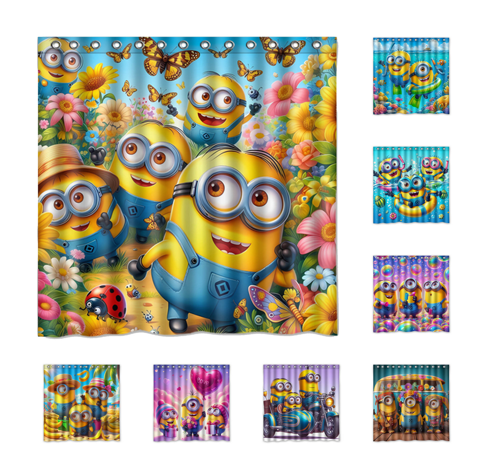 - New!!! Minions Custom Waterproof Polyester Shower Curtain 4 Size