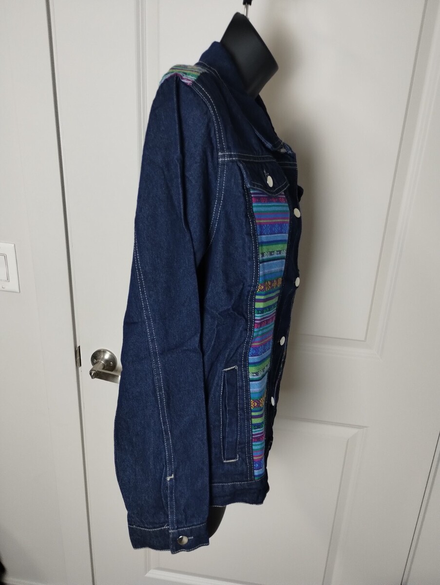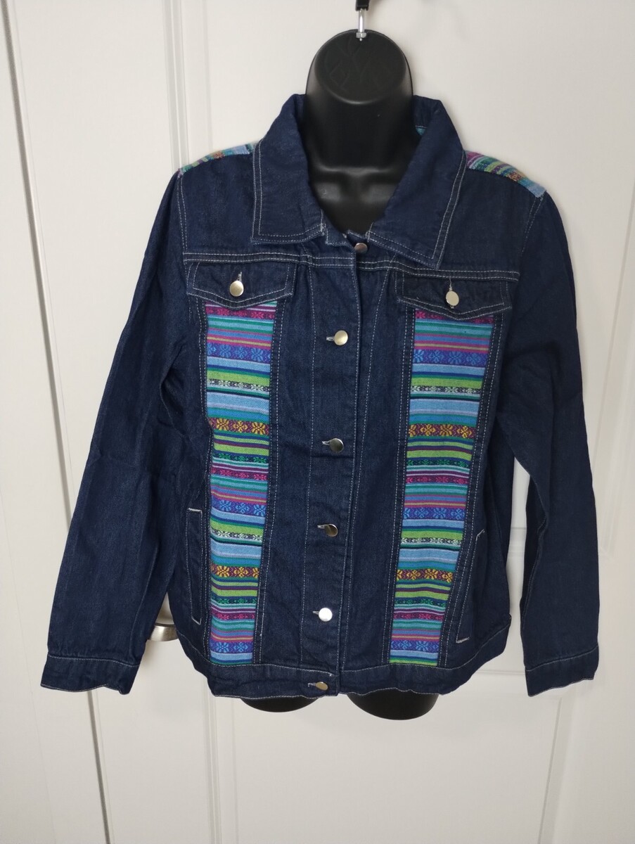 New NWOT Tantrums Button Up Jacket Women Medium Blue Southwest 100% Cotton Denim