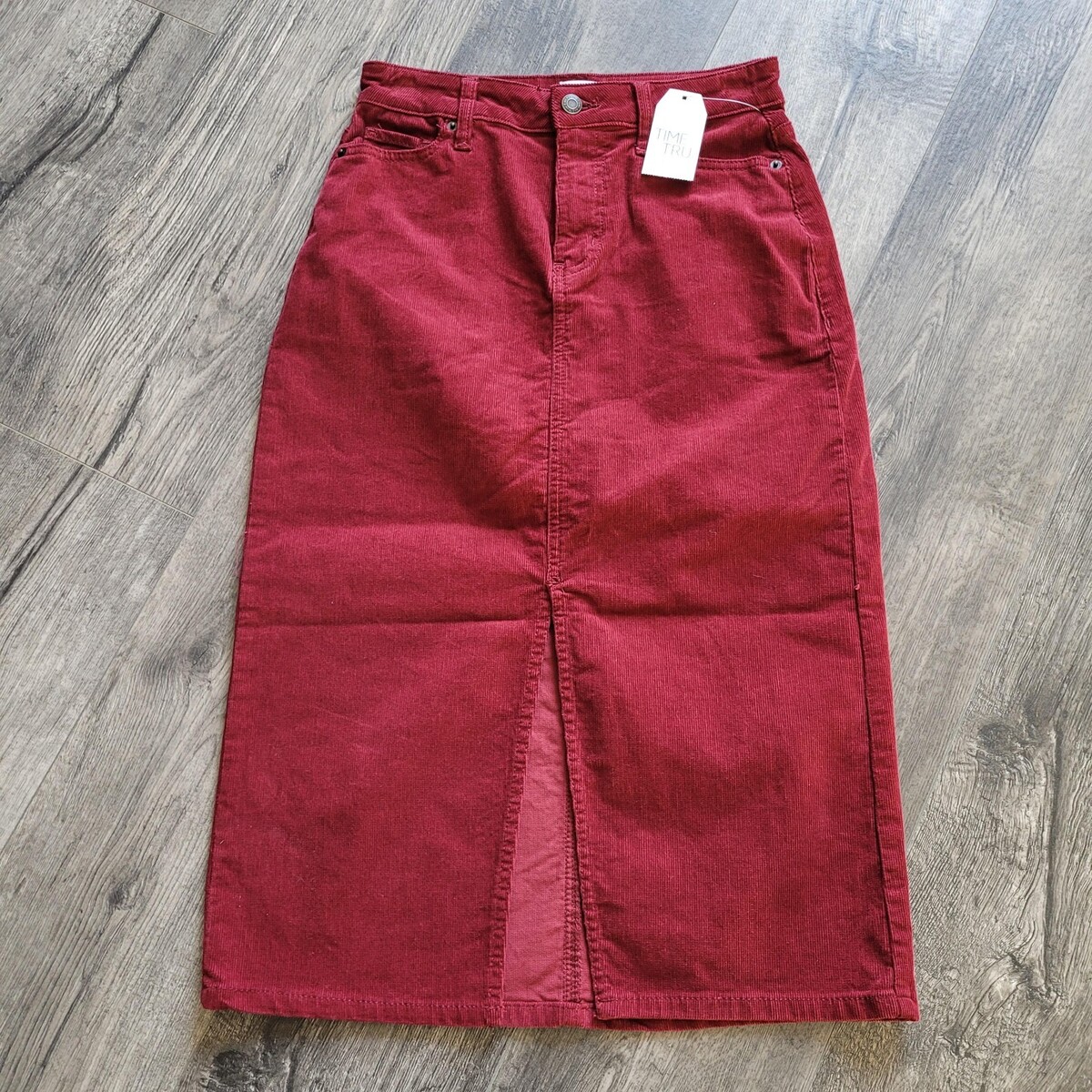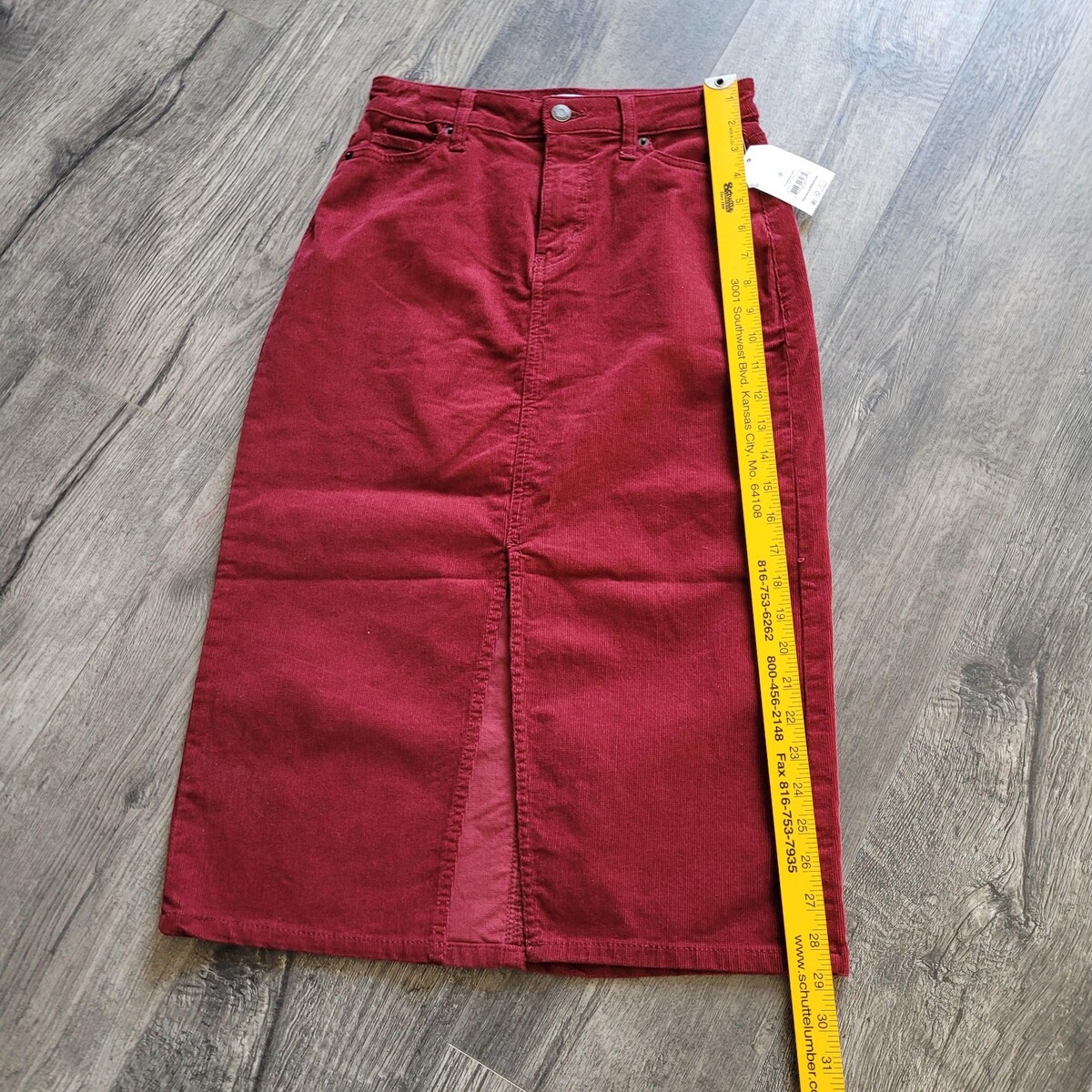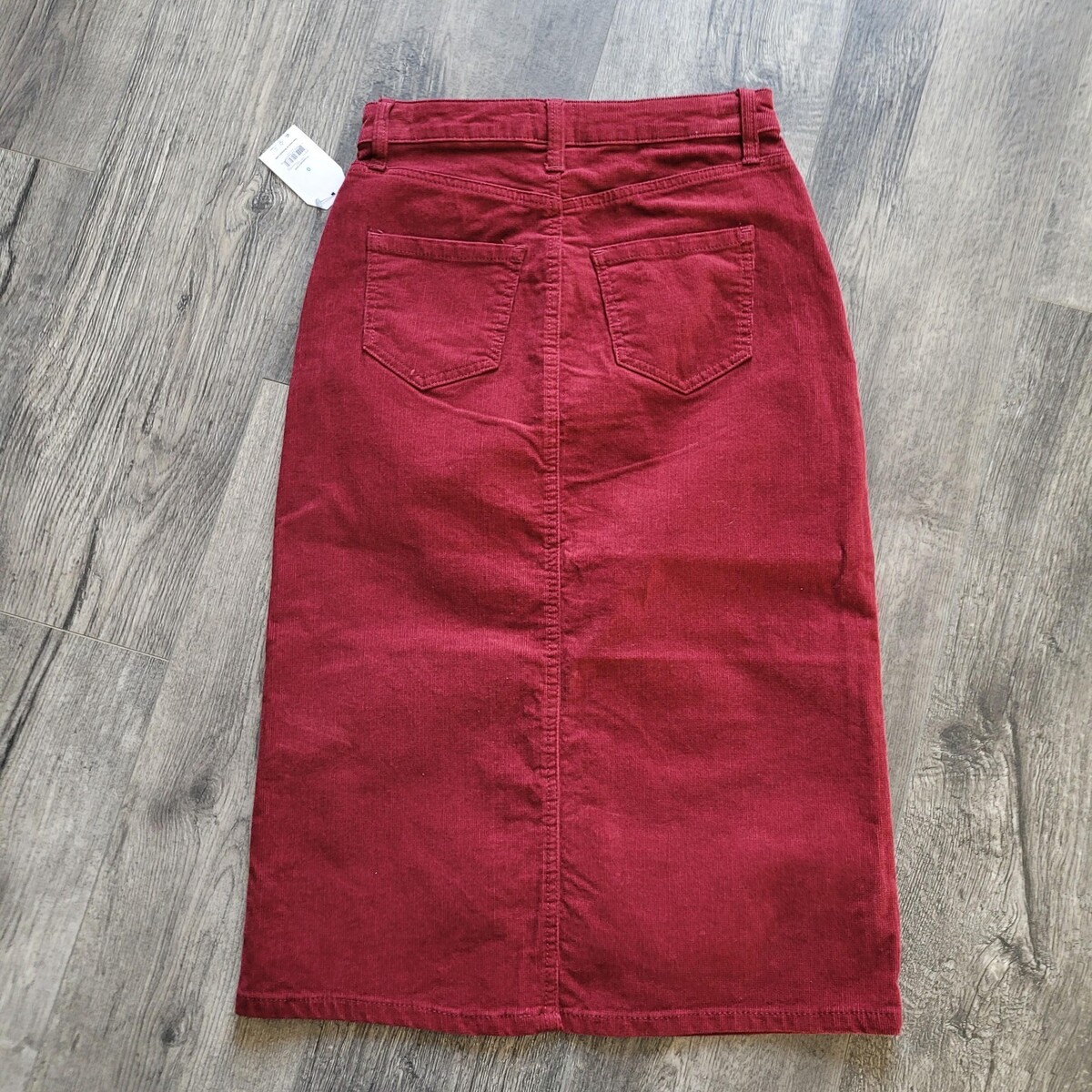 New NWT Time and Tru Women's Denim Wine Burgundy Corduroy Pocketed Skirt Size 0