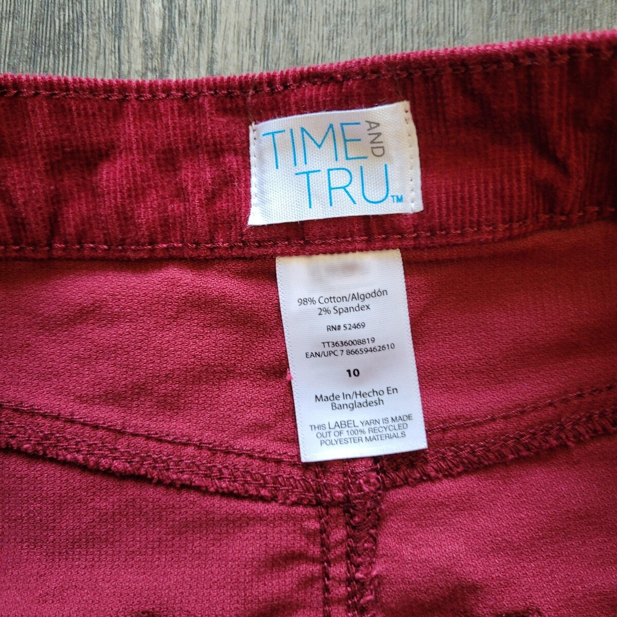 - New NWT Time and Tru Women's Denim Wine Burgundy Corduroy Pocketed Skirt Size 10