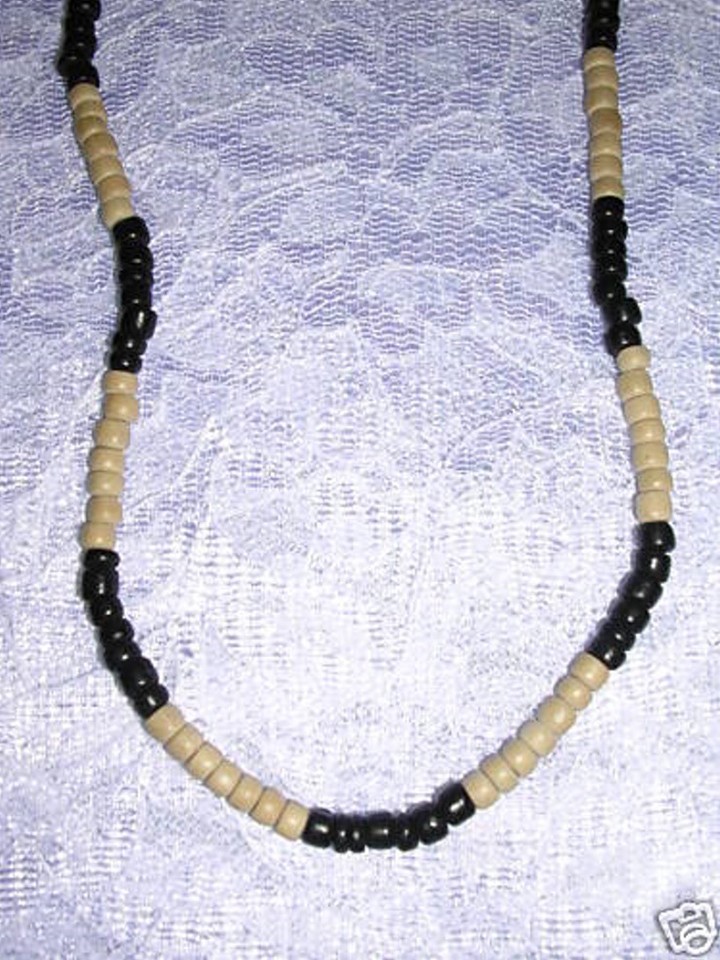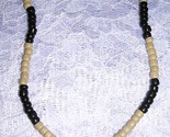 - NEW NATURAL LIGHT TAN & BLACK COCO BEAD WOODEN STRAND JEWELRY 16" NECKLACE