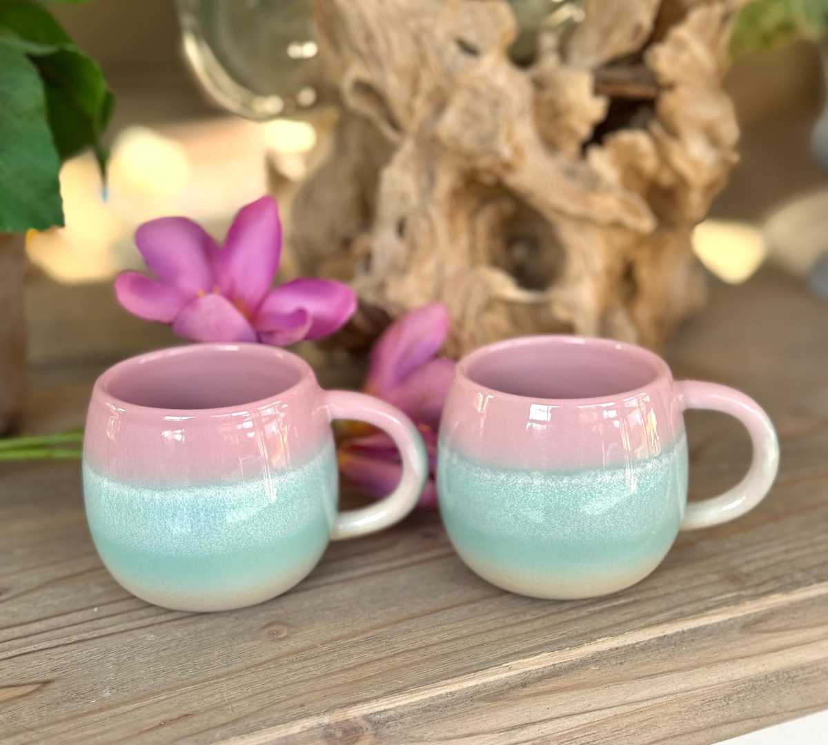 Check out our new set of 2 mugs. These mugs are strongly crafted from high-quality stoneware and features an ombre design created using a reactive glaze technique.