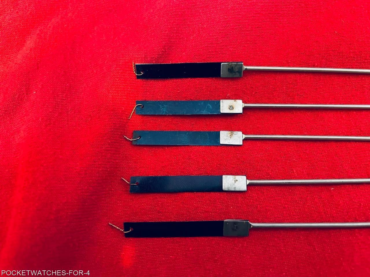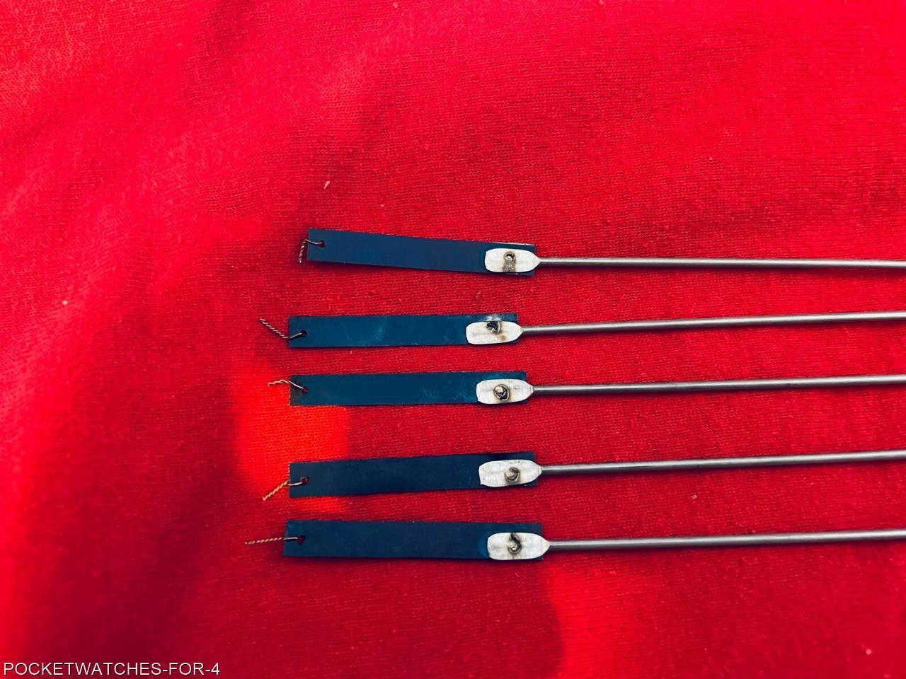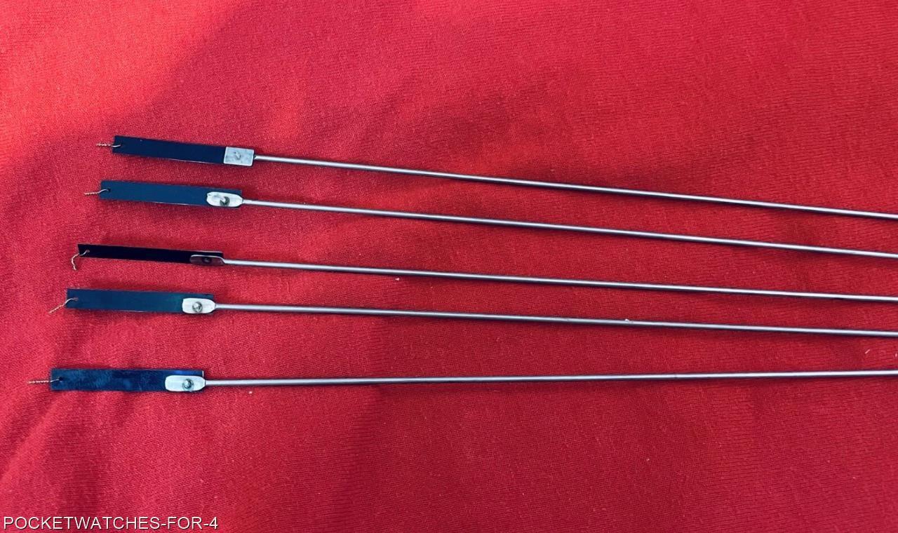 This is a new set of 5 pieces PENDULUM ROD SUSPENSION SPRINGS FOR American clocks.