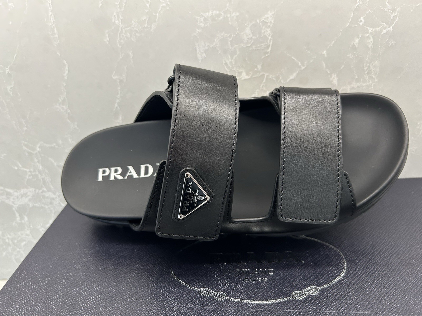 - New Prada Men’s Black Leather Fussbett Sandal Shoes US 9.5 $1100