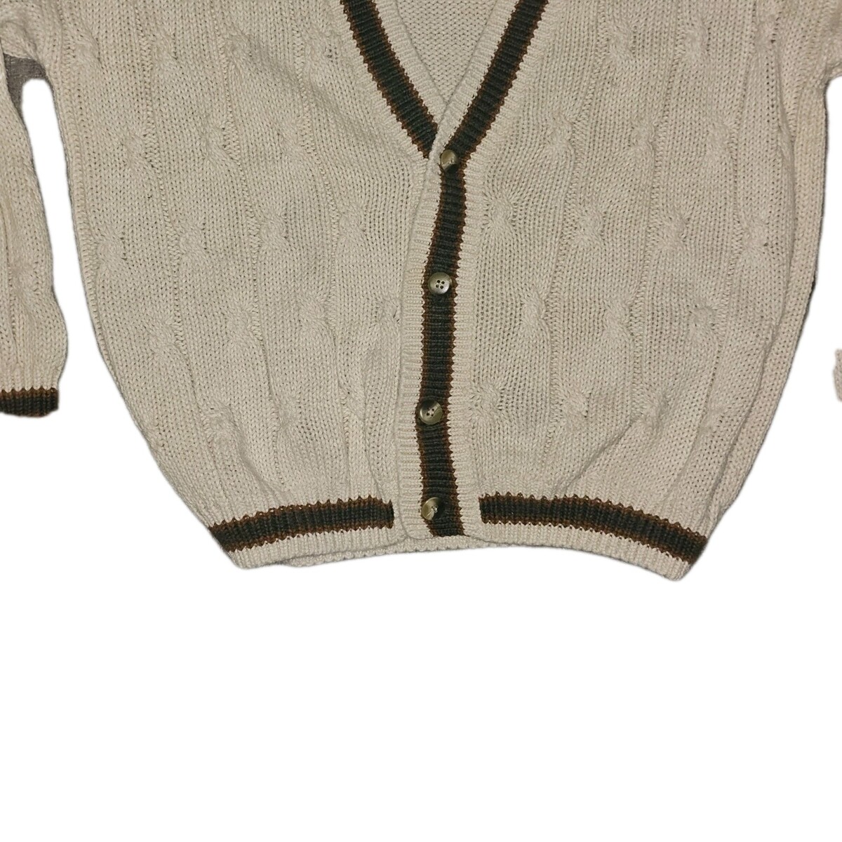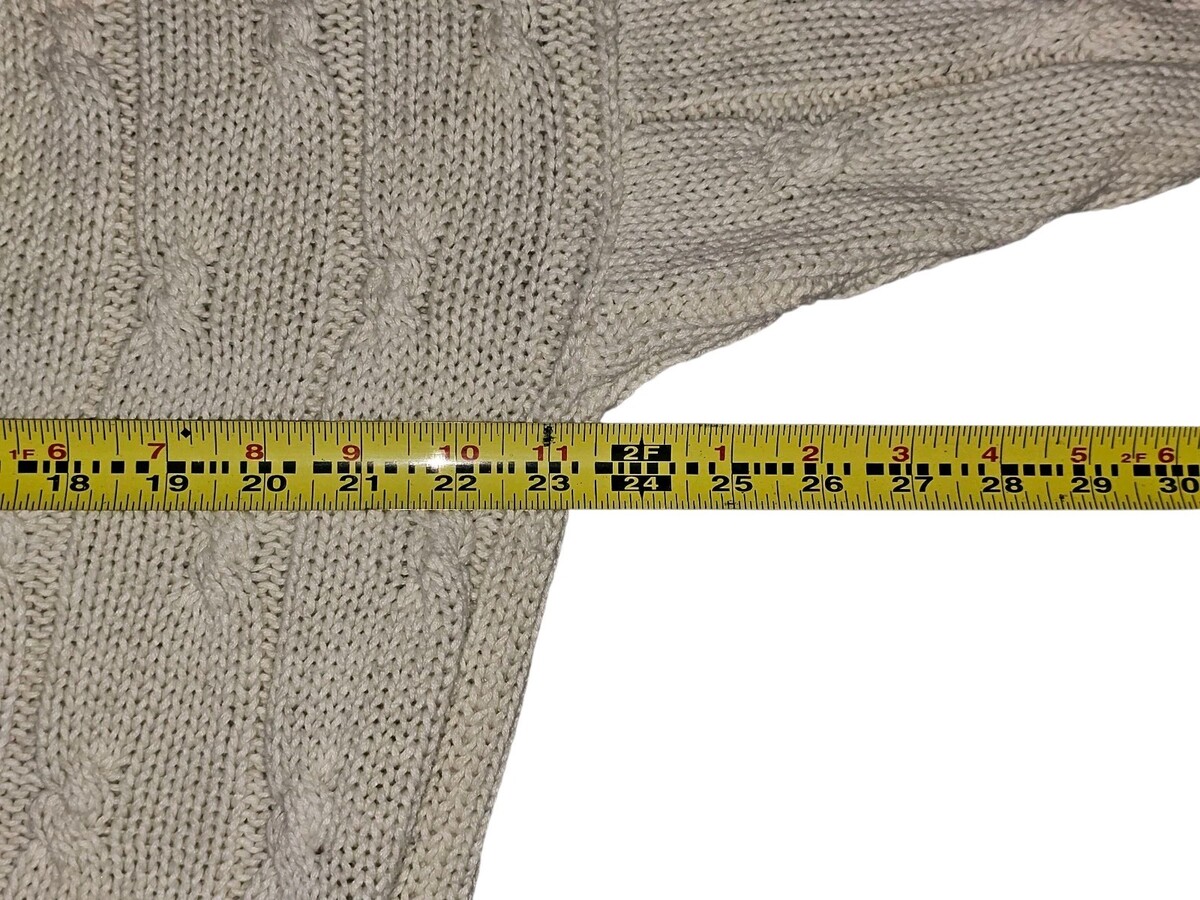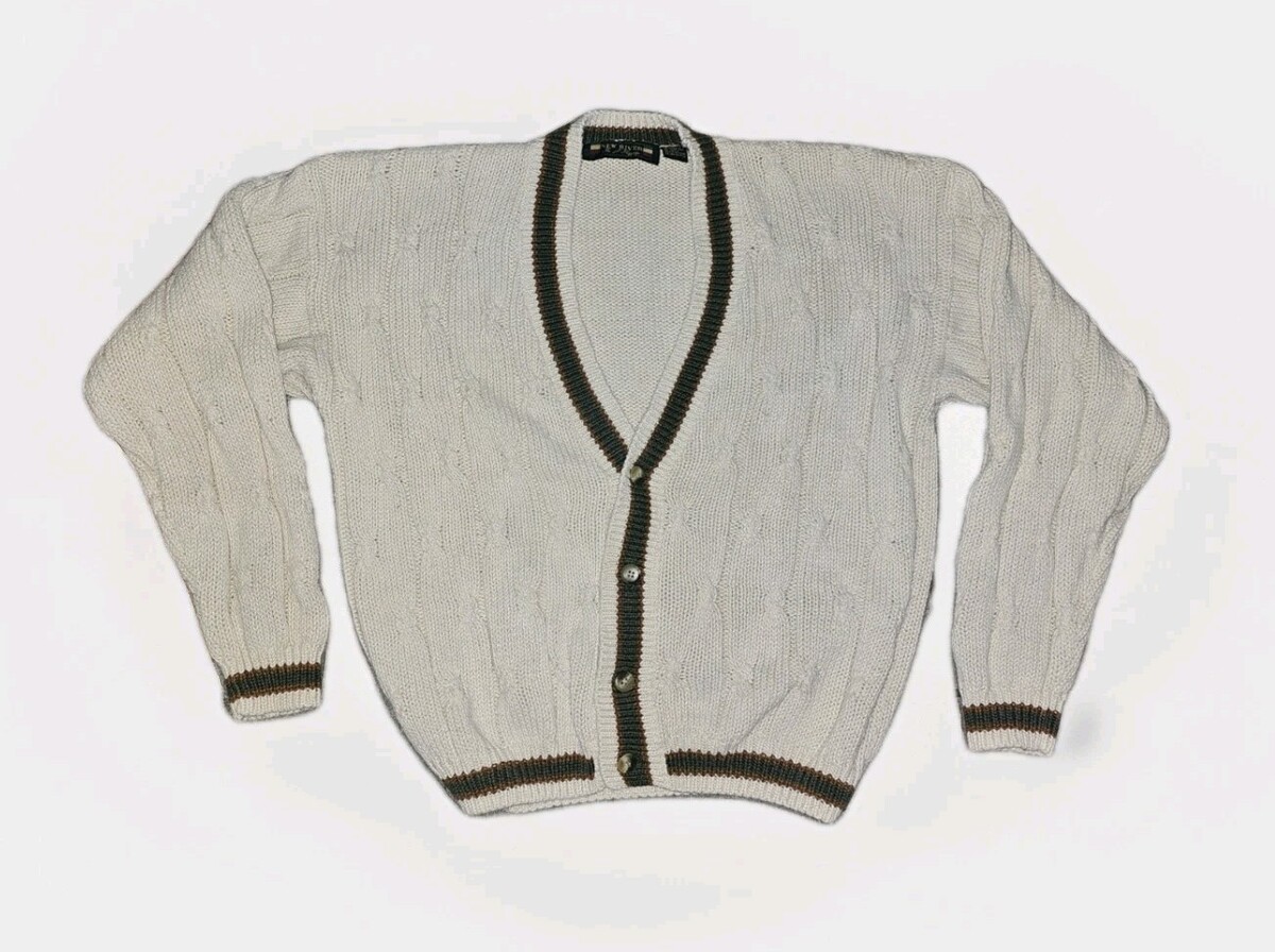 New River J Riggings Men's large Cardigan cream cotton v-neck chunky cable retro