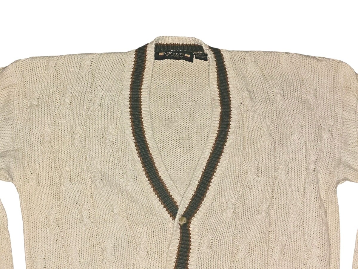 - New River J Riggings Men's large Cardigan cream cotton v-neck chunky cable retro