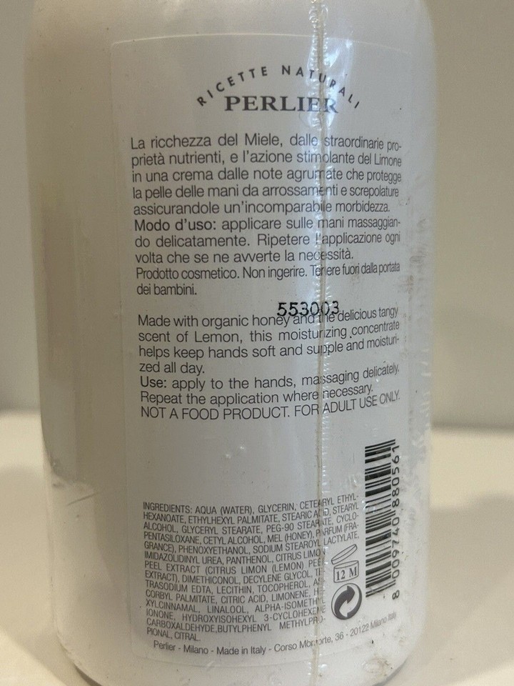New Sealed Perlier Honey Miel Hand Cream Honey & Lemon Scent 16.9 oz Italy Read