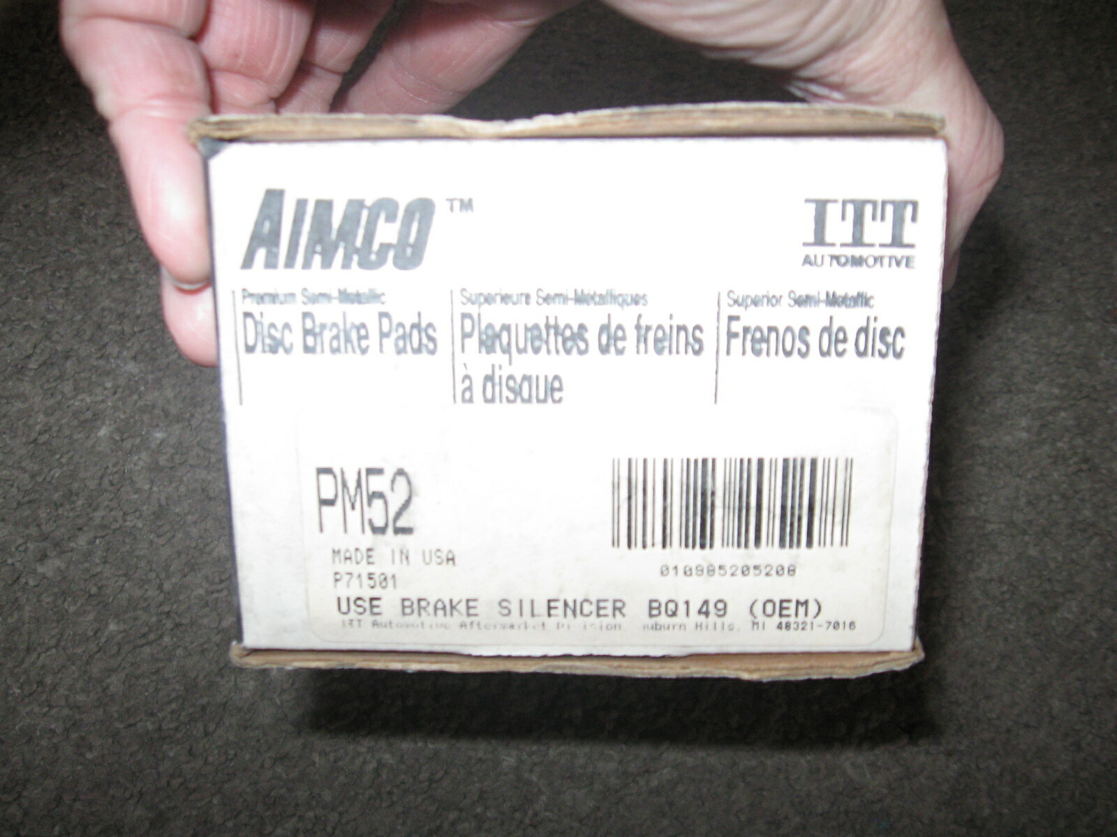 NEW Set of 4 ITT AIMCO Standard Front Disc Brake Pad Semi-Metallic PN#- PM52 This is a great set of 4 pads. They are black in color, cannot find these versions anymore. FREE SHIP