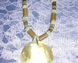 - NEW TAN COLOR TUBE & ASST SHAPED SHELL BEADS w ROUND SHELL PENDANT 16" NECKLACE