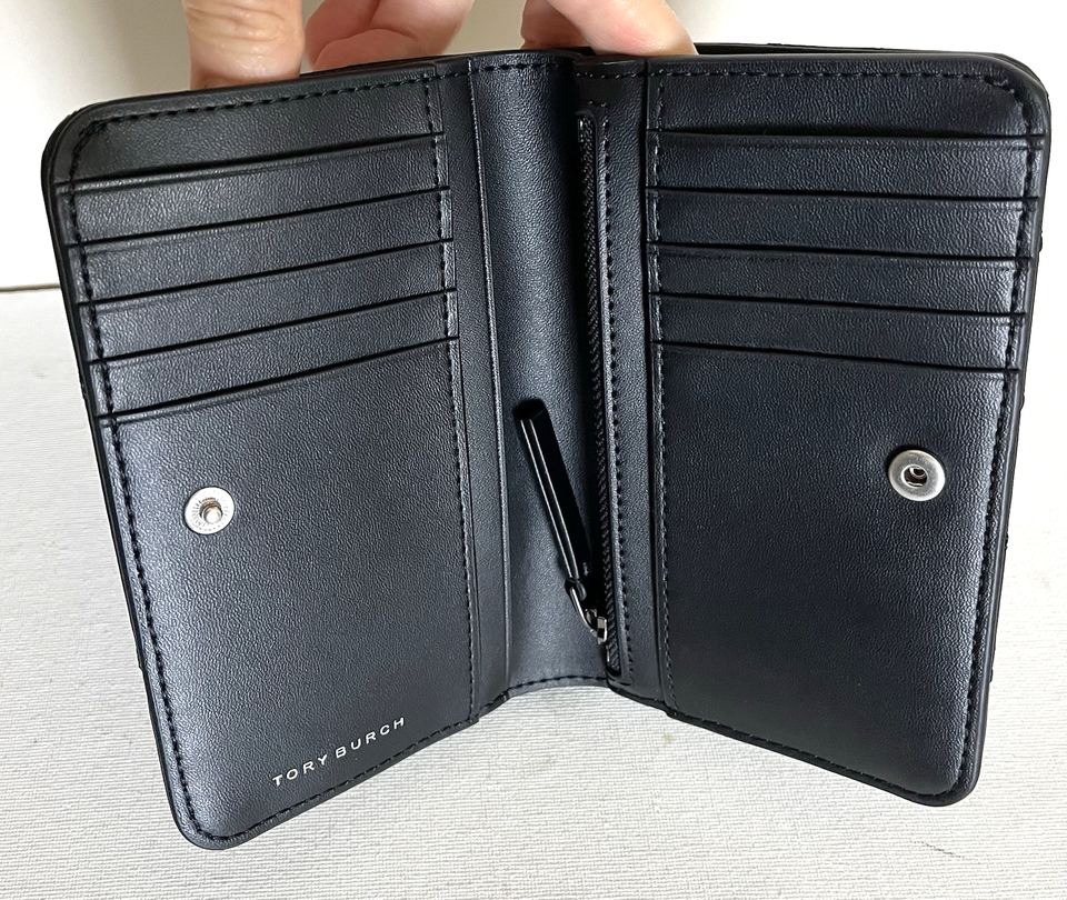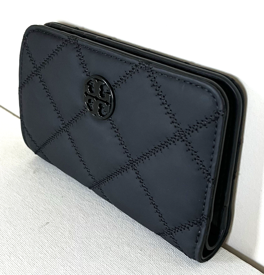 New Tory Burch Willa Matte Medium Leather Wallet Black