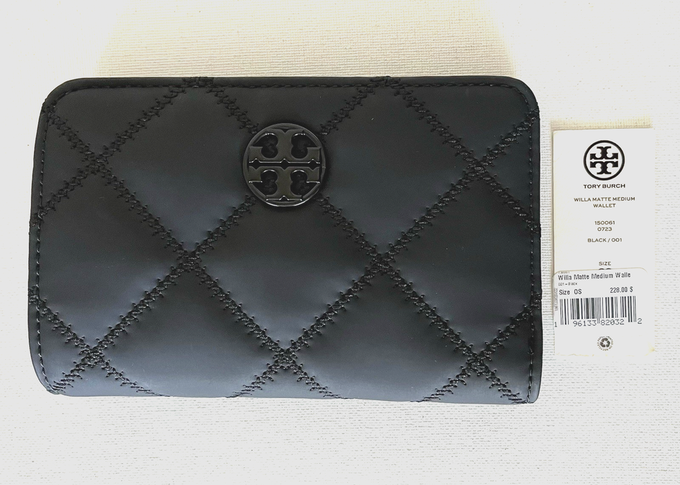 - New Tory Burch Willa Matte Medium Leather Wallet Black