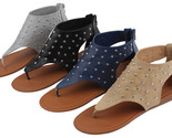New Women's Gladiator Roman Sandals Studded Flats Thong Back Zipper Colors Sizes