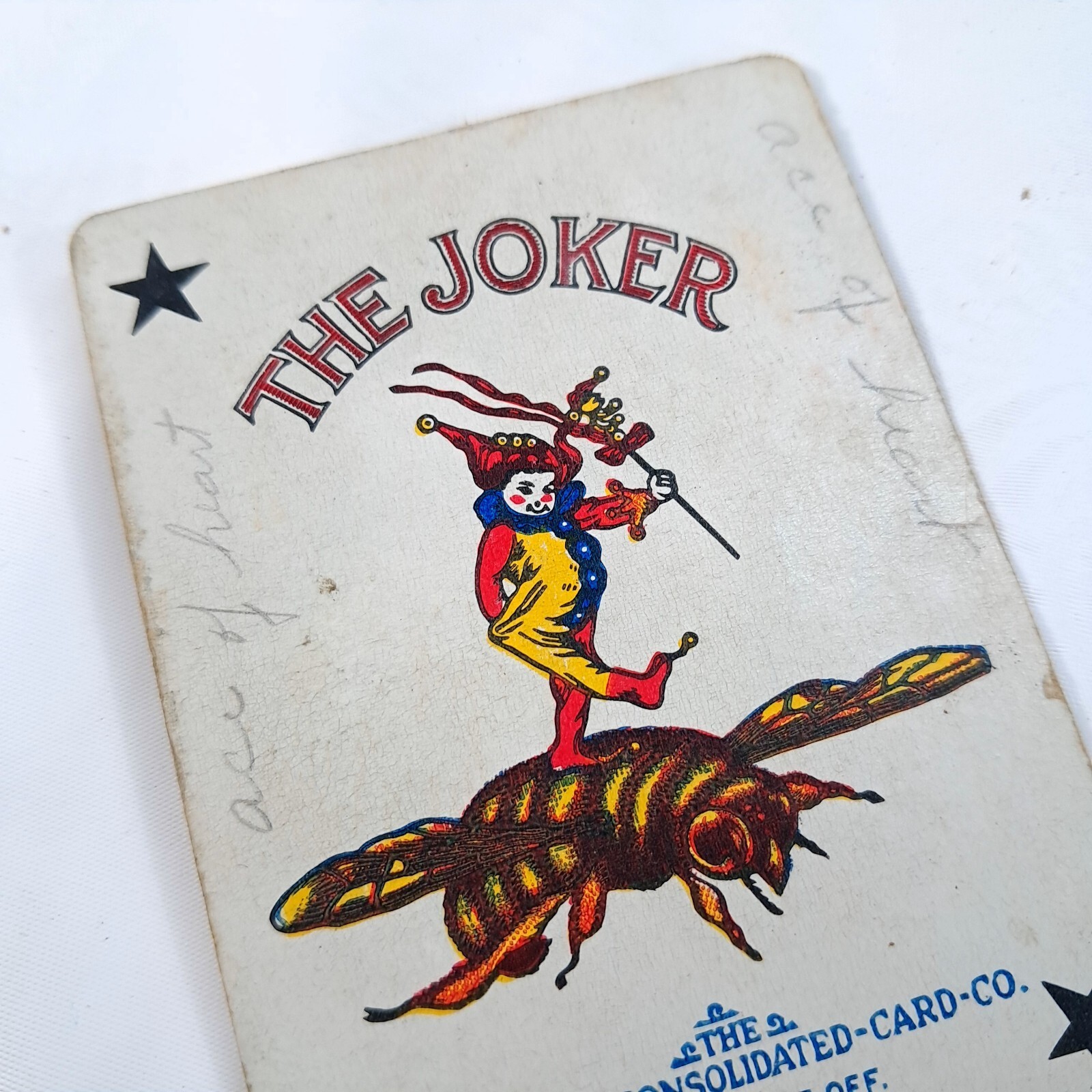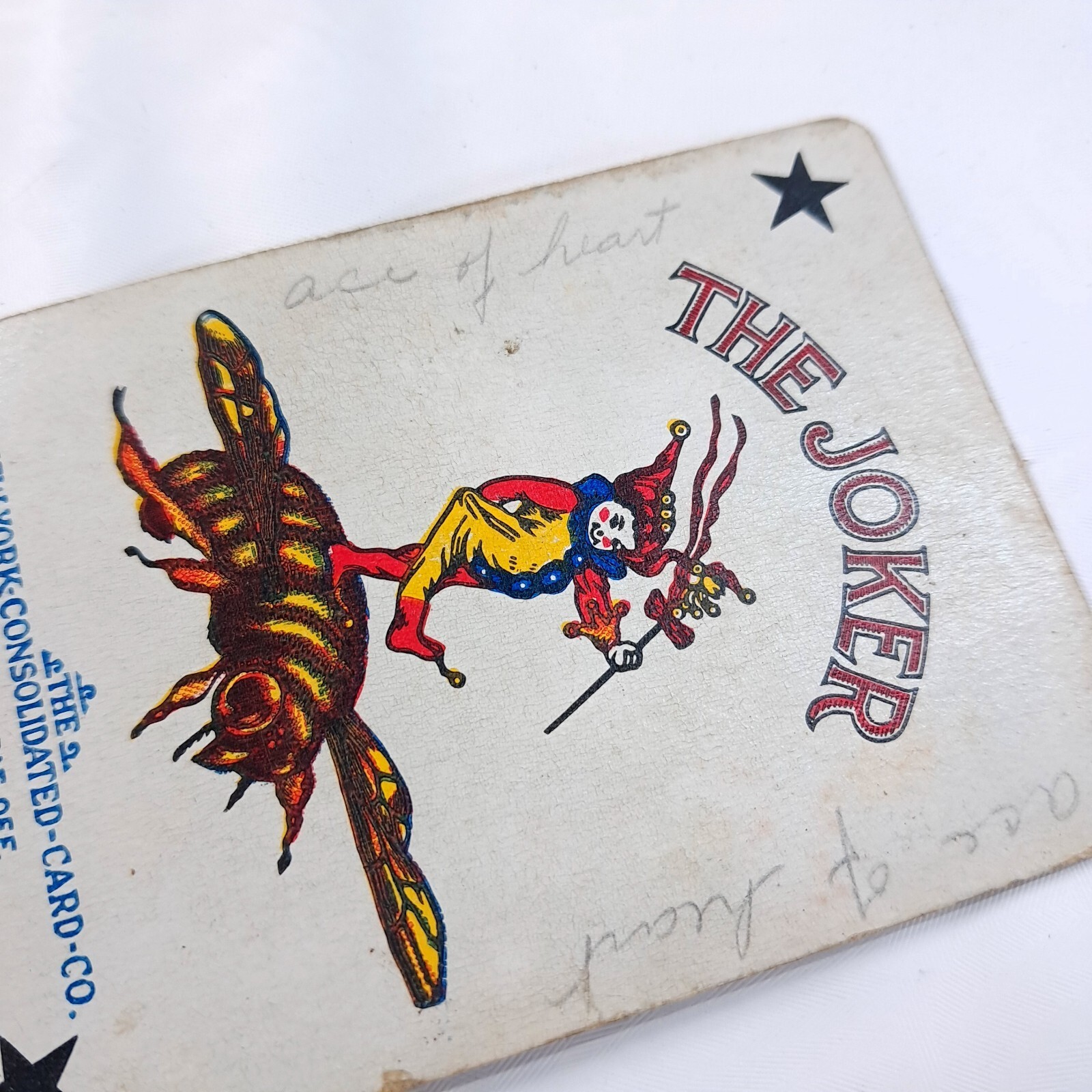 New York Consolidated Co Company Joker Single Playing Card clown bee jester USA Wear/marks/stains/folding as shown. Includes single card as shown ONLY.