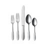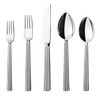 The set contains one each of a dinner fork (3320012, 191mm), a long dinner knife (3320017, 210mm), a desert spoon (3320021, 173mm), a lunch or starter fork (3320022, 174mm) and a teaspoon (3320031, 156mm). It is made from stainless steel with a matte finish and suitable for a dishwasher.