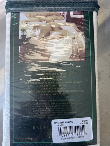 - NewVintage Ralph Lauren 52nd Street Jacquard Cream European Shams Sateen Cotton
