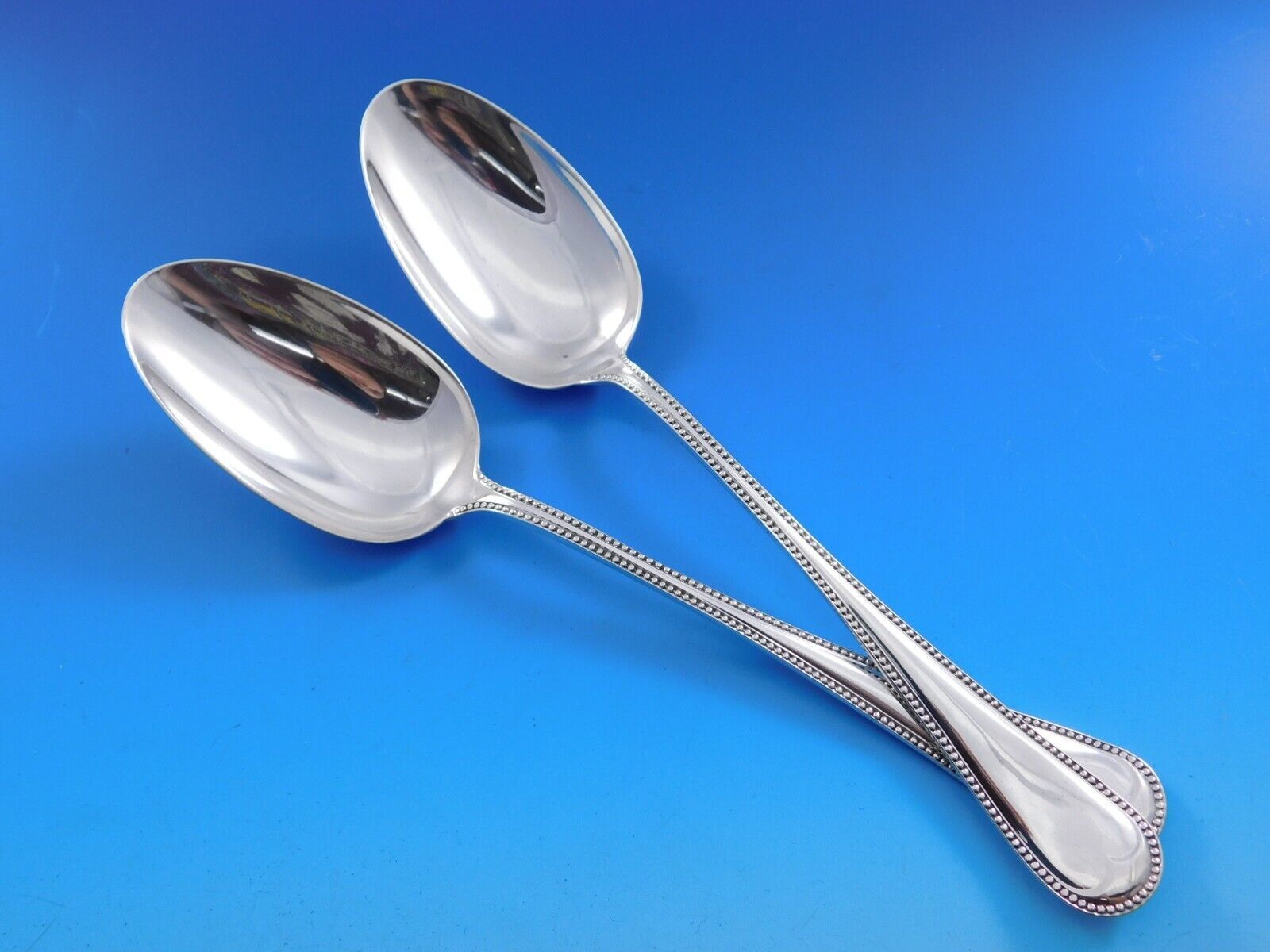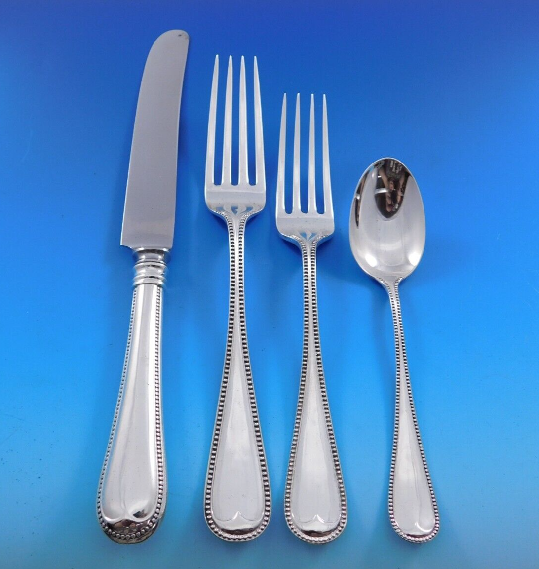 Gorgeous Dinner Size Newcastle by Gorham sterling silver Flatware set with classic beaded handle design, 98 pieces. This timeless pattern was introduced by Gorham in the year 1895. This set includes: