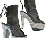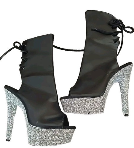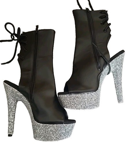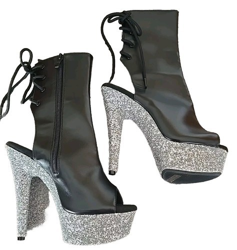 This Sale is for One (1) Pair of Nianxheni Shoes Women's Size 8M Black Upper ~ Silver Glitter Platform Heel Stiletto heel measures approximately 5.75" tall ~ Platform measures approximately 1.5" Back Tie Closure Side Zipper Closure Rounded ~ Peep-Toe Padded Foot-bed Sturdy Design Upper Lining ~ Man Made Leather Outer-sole ~ Rubber Shoes are New ~ Never Worn Please view photos for a good description of these shoes Thank you!