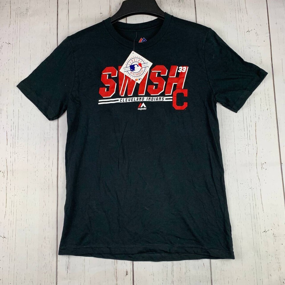 Nick Swisher 33 Cleveland Indians MLB Majestic Large Black Tshirt New Youth