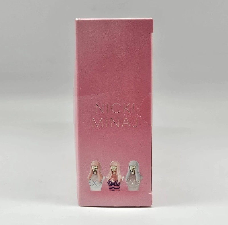 Experience three unique versions of Nicki Minaj?s iconic fragrance in this collectible miniature perfume trio. Each scent captures a different side of her playful, confident style, perfect for sampling, gifting, or adding to a perfume collection.