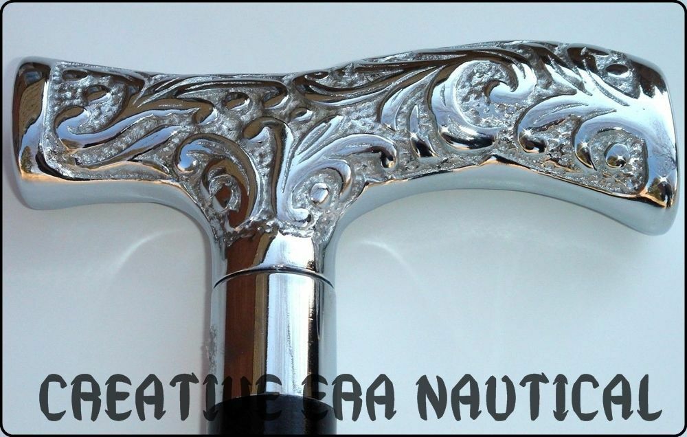 - Nickle Brass Victorian Handle Style Walking Cane Designer Style