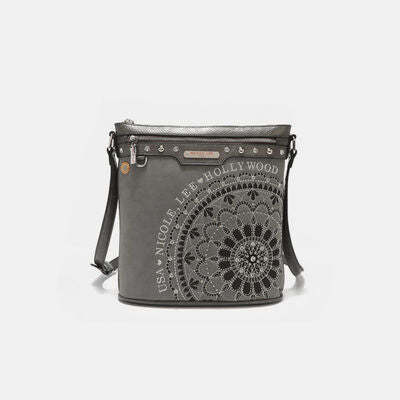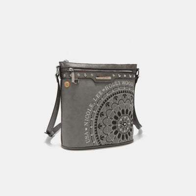 - Nicole Lee USA Metallic Stitching Embroidery Inlaid Rhinestone Crossbody Bag